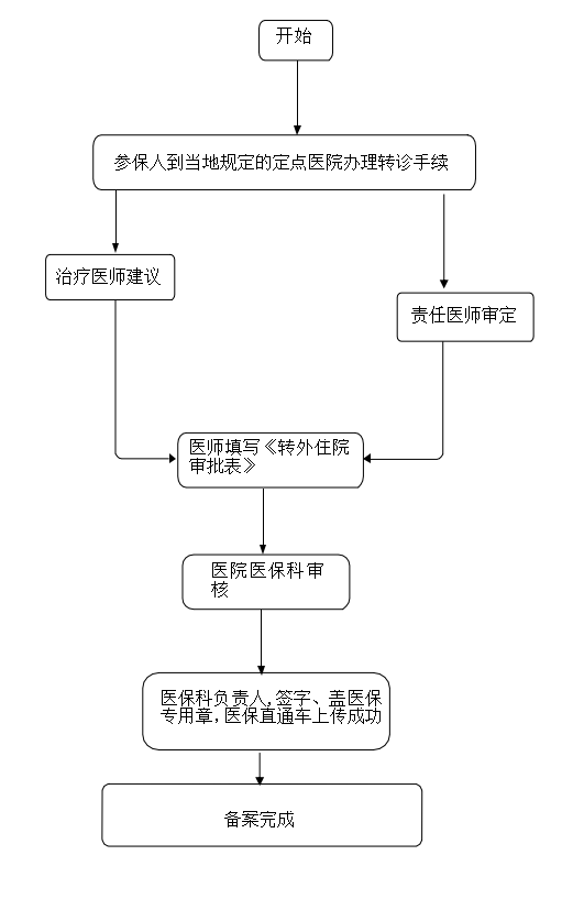 4.醫院醫保科對人員身份及轉診材料進行審核,對符合轉診規定的,醫保科負責人在《轉外住院審批表》“醫院意見”欄簽字、蓋醫保專用章,醫院通過直通車上傳轉診轉院表即可。