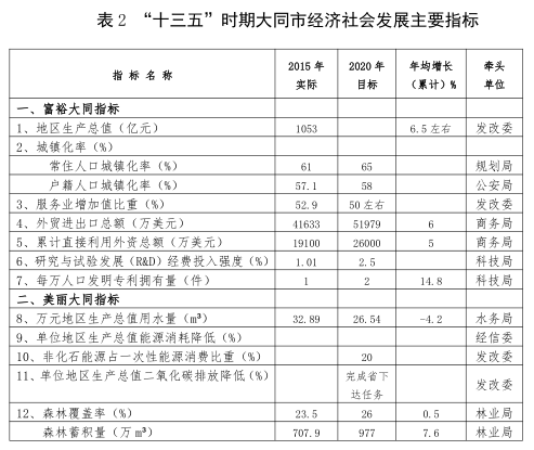 大同市國民經(jīng)濟(jì)和社會(huì)發(fā)展第十三個(gè)五年規(guī)劃綱要