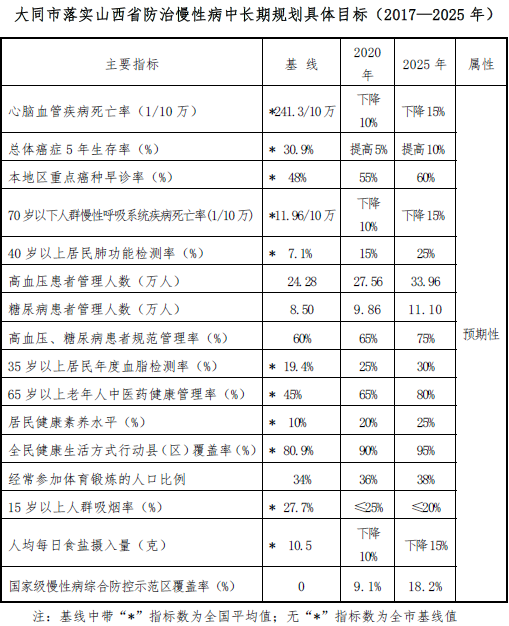 大同市落實(shí)山西省防治慢性病中長(zhǎng)期規(guī)劃(2017—2025年)實(shí)施方案