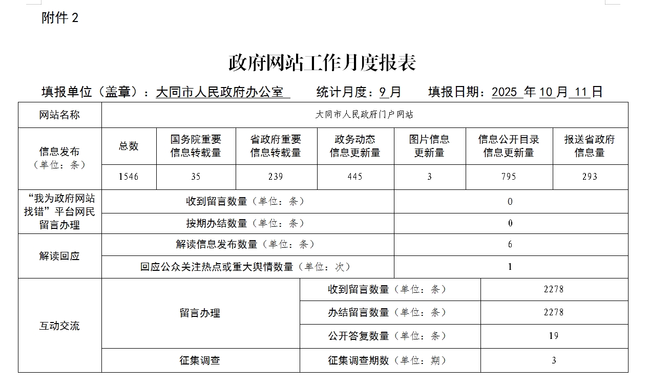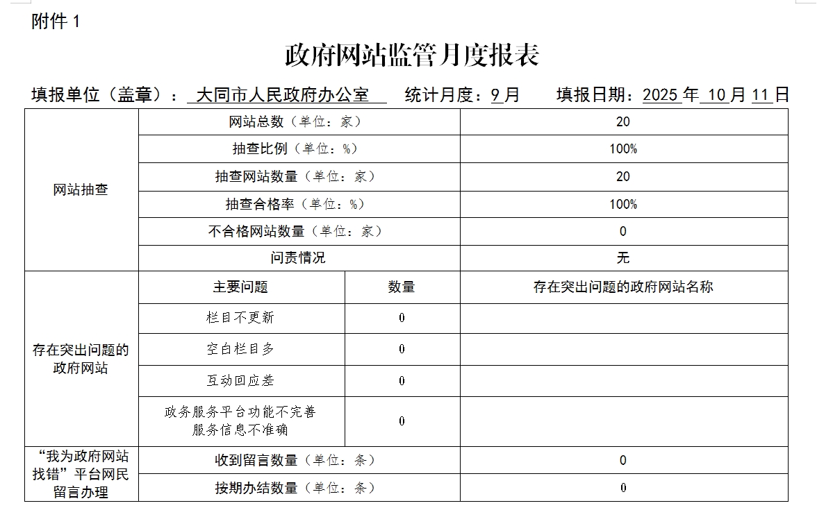 大同市人民政府辦公室關(guān)于2025年9月全市政府網(wǎng)站與政務(wù)新媒體自查情況的報(bào)告