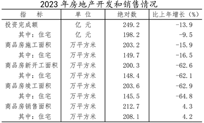 全年全市房地產(chǎn)開發(fā)投資249.2億元,比上年下降13.9%。其中,住宅投資198.2億元,下降9.5%;商業(yè)營業(yè)用房投資23.2億元,下降25.7%。