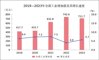 初步統(tǒng)計(jì),全年全市全部工業(yè)增加值711.7億元,按不變價(jià)格計(jì)算,比上年增長5.7%。規(guī)模以上工業(yè)增加值比上年增長4.5%。