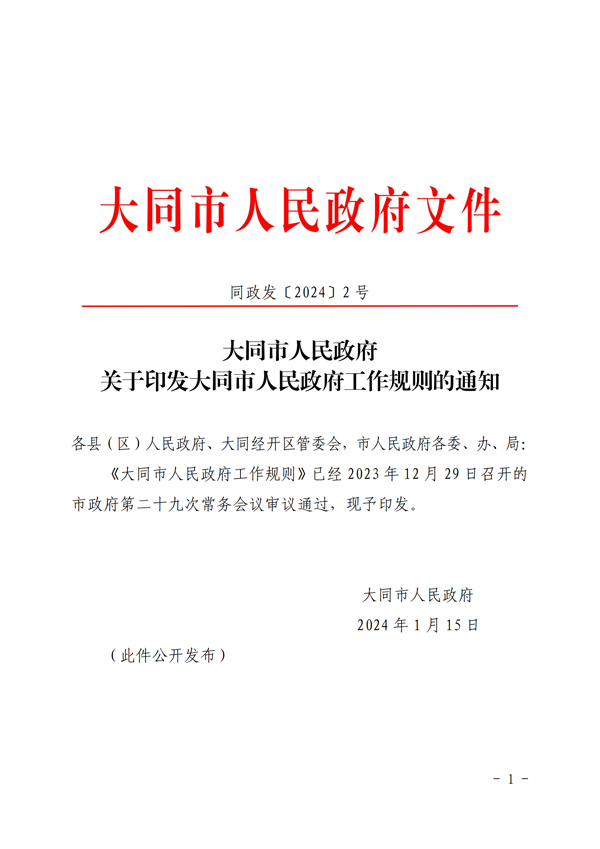 《大同市人民政府工作規則》已經2023年12月29日召開的市政府第二十九次常務會議審議通過,現予印發。