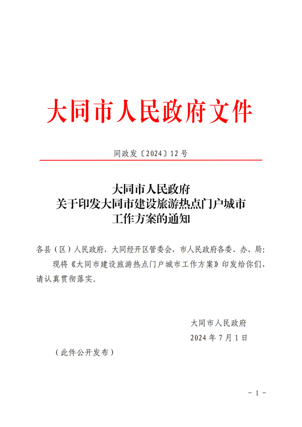 大同市人民政府關于印發大同市建設旅游熱點門戶城市工作方案的通知