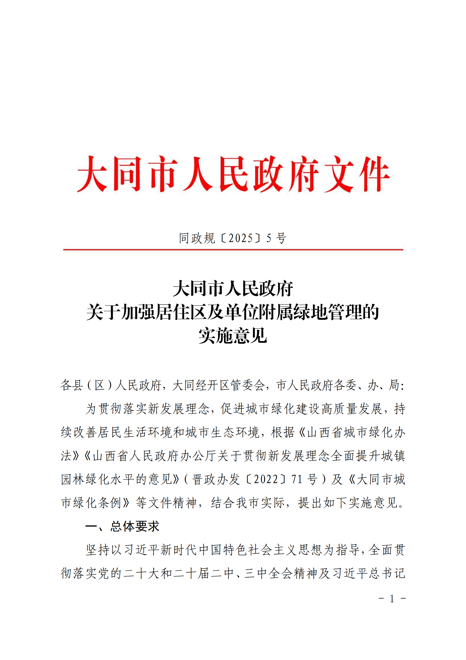 為貫徹落實新發展理念,促進城市綠化建設高質量發展,持續改善居民生活環境和城市生態環境,根據《山西省城市綠化辦法》《山西省人民政府辦公廳關于貫徹新發展理念全面提升城鎮園林綠化水平的意見》(晉政辦發〔2022〕71號)及《大同市城市綠化條例》等文件精神,結合我市實際,提出如下實施意見。