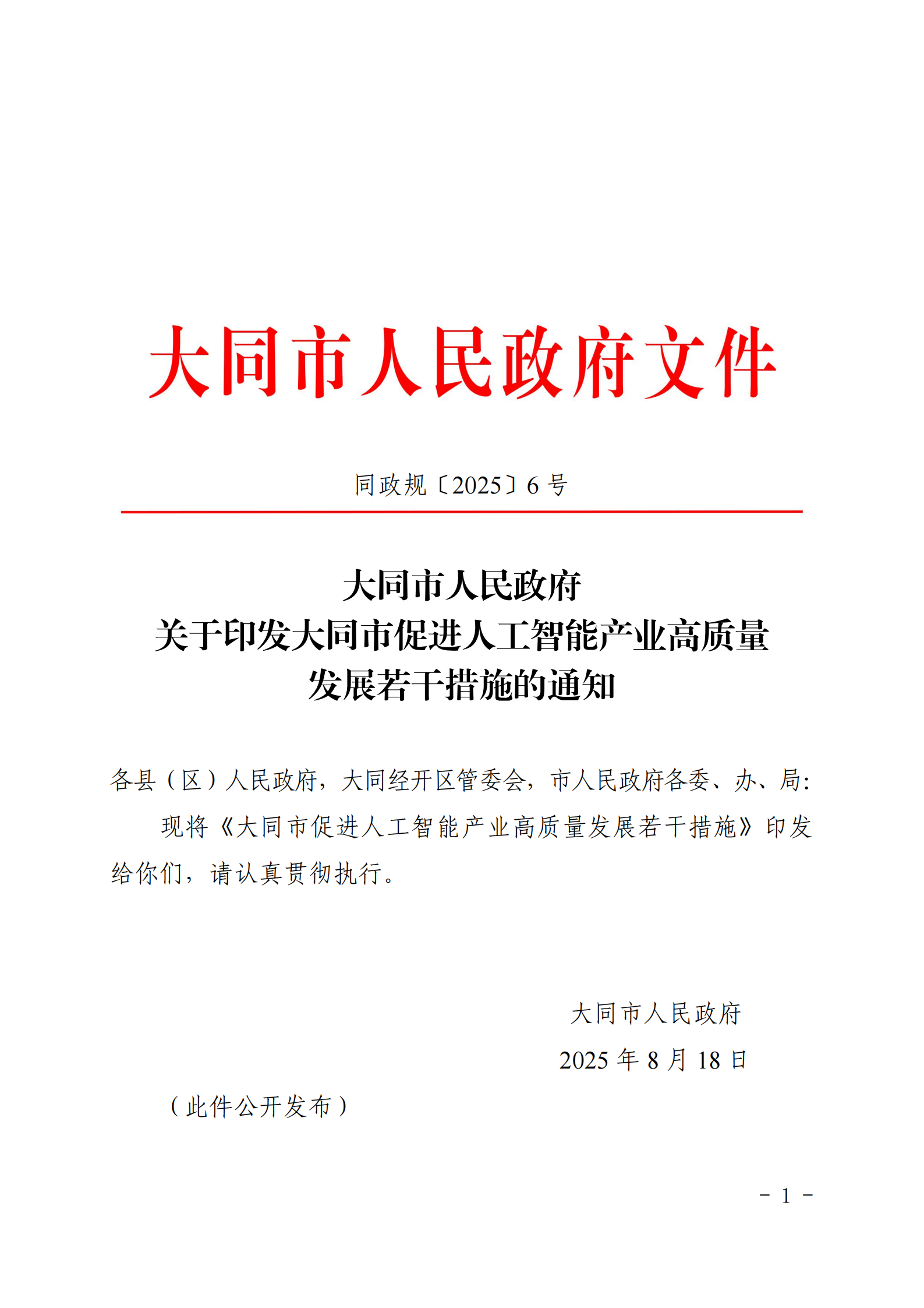 大同市人民政府關于印發大同市促進人工智能產業高質量發展若干措施的通知