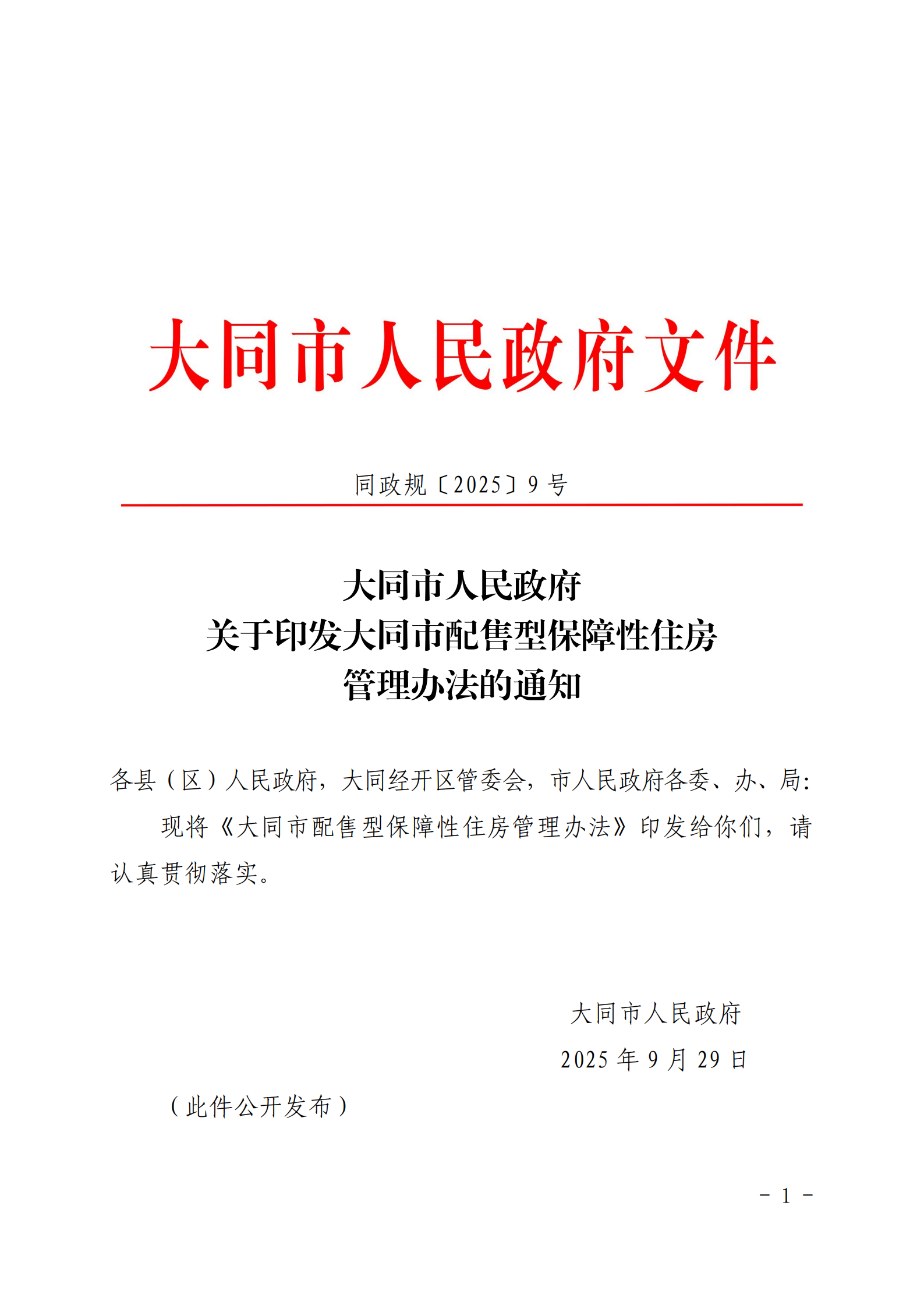 現將《大同市配售型保障性住房管理辦法》印發給你們,請認真貫徹落實。