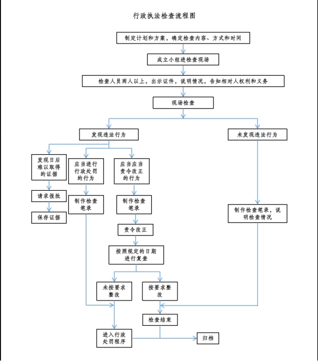 (八)結果送達:對未發現違法行為的行政檢查,向當事人說明情況;如發現違法行為,需進行行政處罰的,按照行政處罰流程處理。